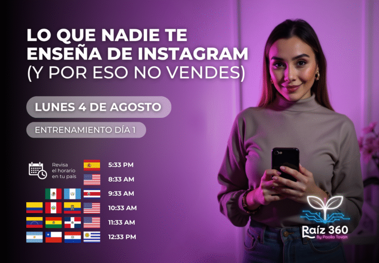 Mi enfoque va más allá de los likes: te enseño a construir una marca que comunique con fuerza, que conecte con personas reales y que venda desde el valor. Porque sí se puede crecer sin pagar publicidad, sin ser influencer y sin perder tu esencia.